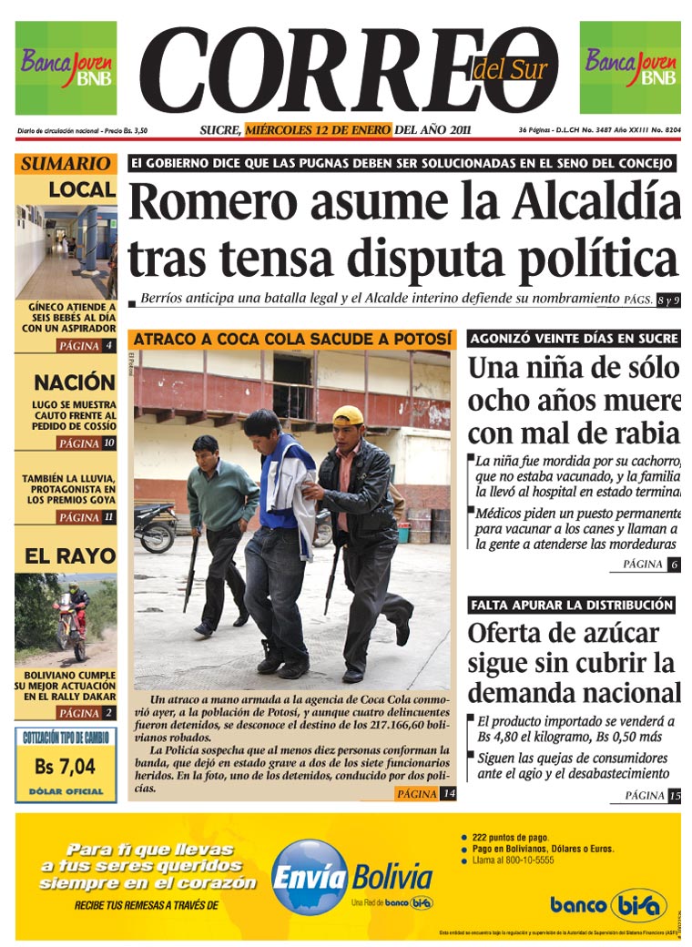 detenidos, se desconoce el destino de los 217.166,60 bolivianos