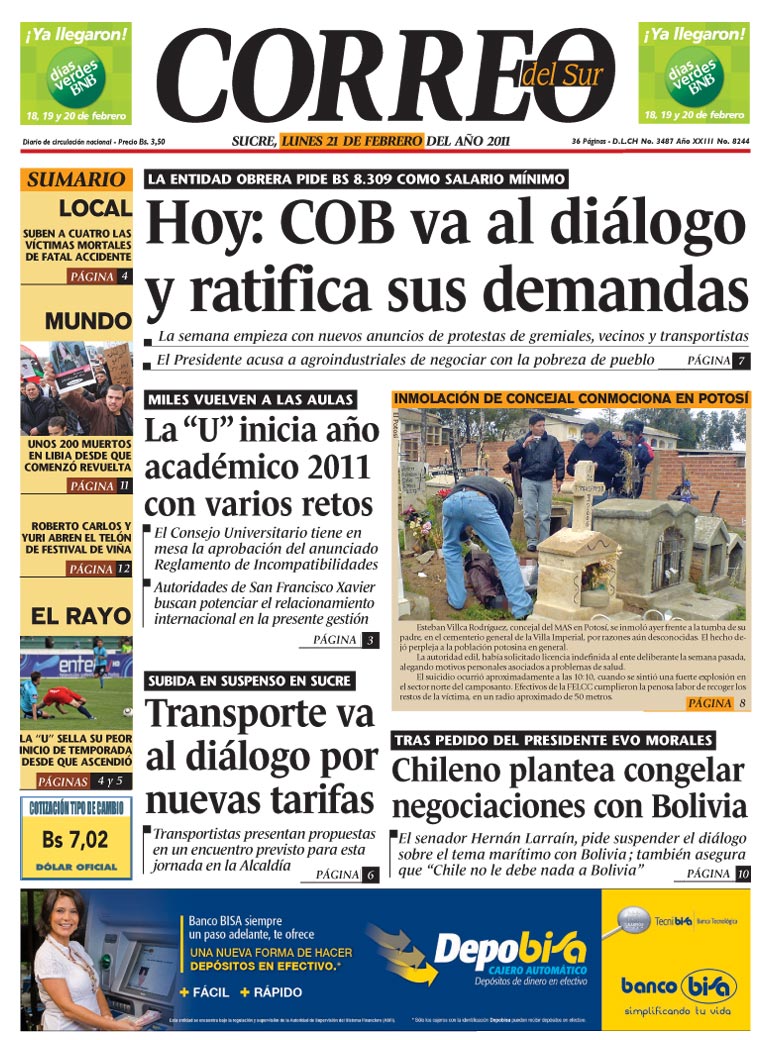 Hoy: COB va al diálogo y ratifica sus demandas |