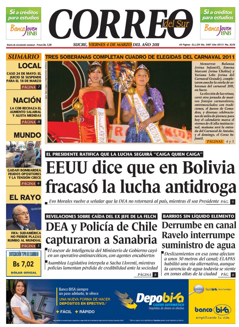 anoche la estela de soberanas del carnaval 2011, en Sucre.