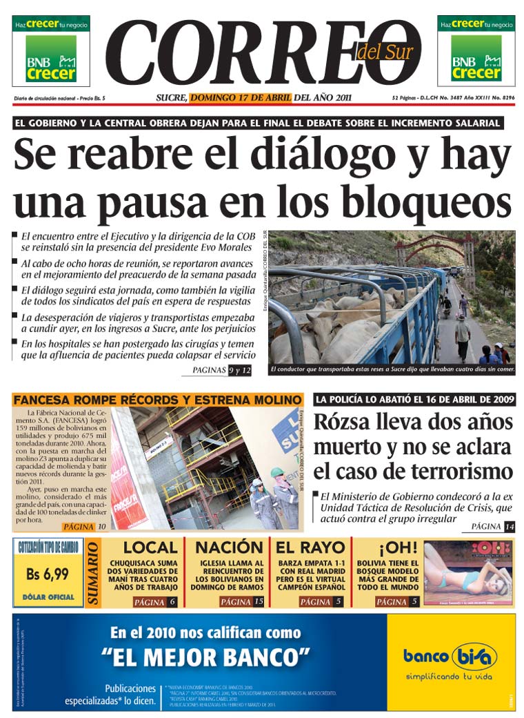 ayer, en los ingresos a Sucre, ante los perjuicios