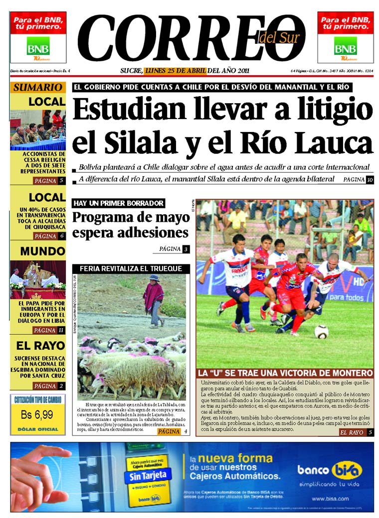 Bolivia estudia nueva demanda contra Chile por aguas del Silala |