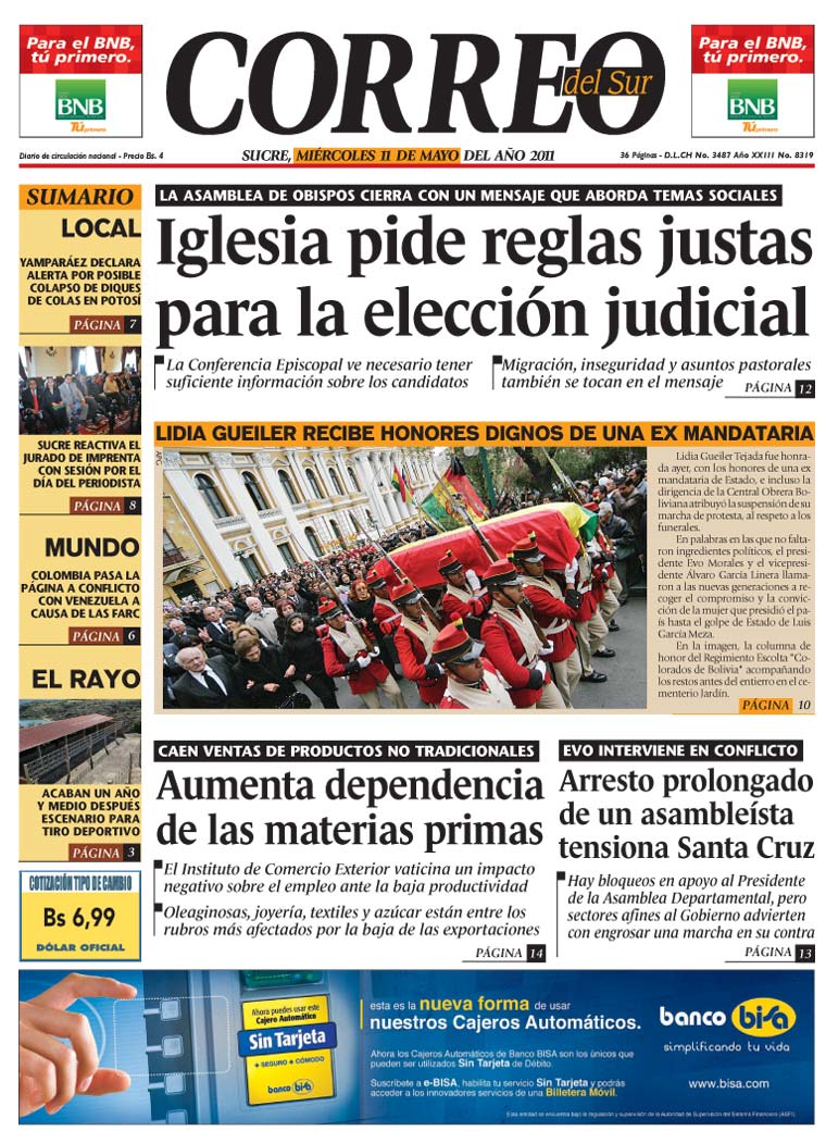 Autoridades y familia despiden a Gueiler con todos los honores |