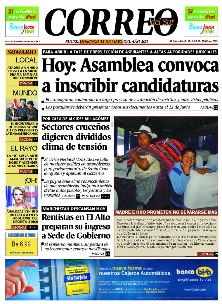 Hoy: Asamblea convoca a inscribir candidaturas |