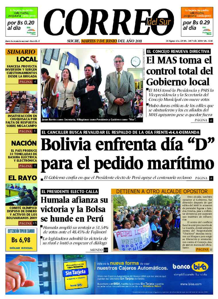 Evo alaba el “gran triunfo de Humala” y dice que es una “victoria del pueblo” |