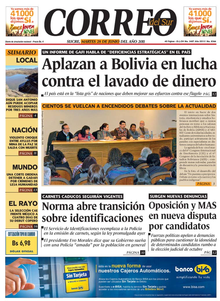 El GAFI pone a Bolivia en lista de cuestionados |
