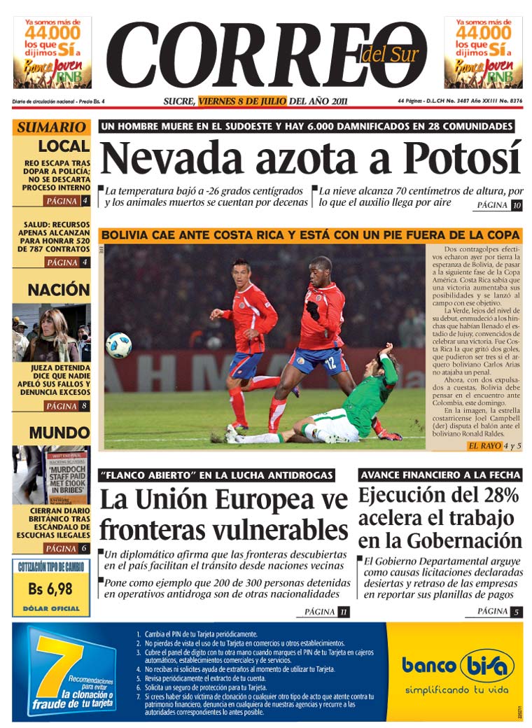 UE: Bolivia tiene frontera abierta a tráfico de droga |