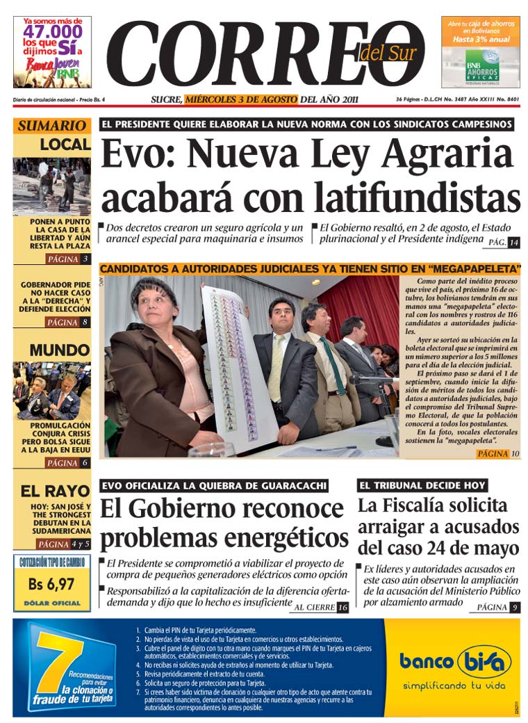 Morales anuncia nueva ley para eliminar el latifundio |