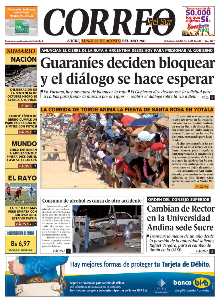 corrida en Yotala, realizada por la fiesta de Santa Rosa. Sin