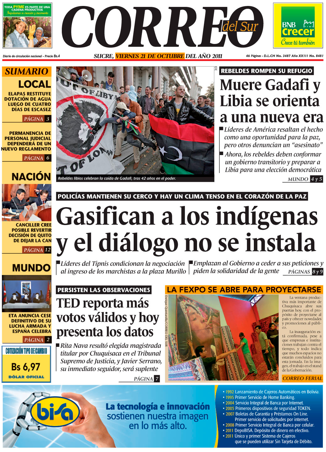 Los indígenas del TIPNIS fueron gasificados anoche por la Policía, en su intento de ingresar a Plaza Murillo para acompañar a sus líderes en el proceso de diálogo, que aún parece lejano, por la intransigencia de éstos y el Gobierno del presidente Evo Morales...