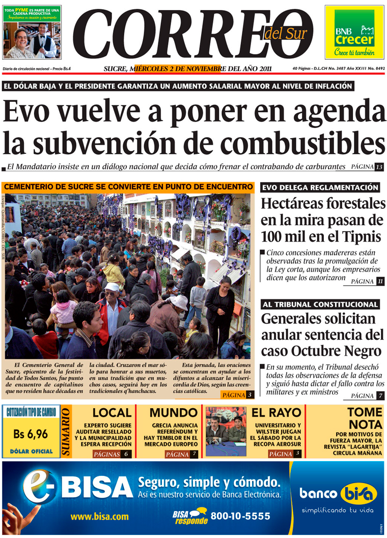 El presidente del Estado, Evo Morales, reveló ayer los planes con los que el Gobierno piensa cerrar la gestión 2011: anunció que el incremento salarial para 2012 será mayor al porcentaje de la tasa de inflación acumulada que se registre a fines de diciembre y que pondrá en debate la reducción gradual de la subvención de los carburantes. Las críticas no se dejaron esperar...
