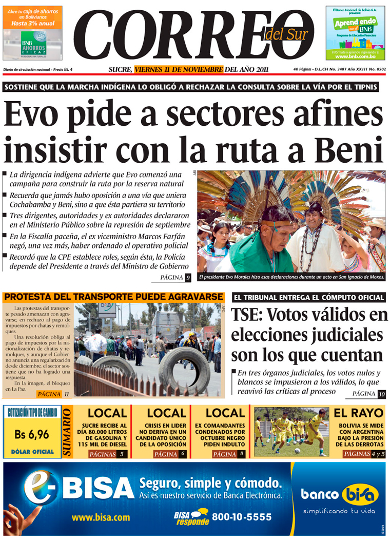 Evo insiste con vía por el Tipnis