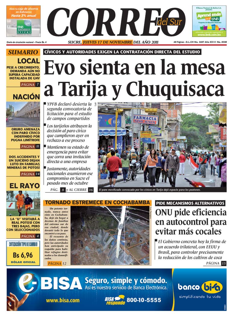 Chuquisaca demandará que siga proceso y Tarija pedirá consenso |