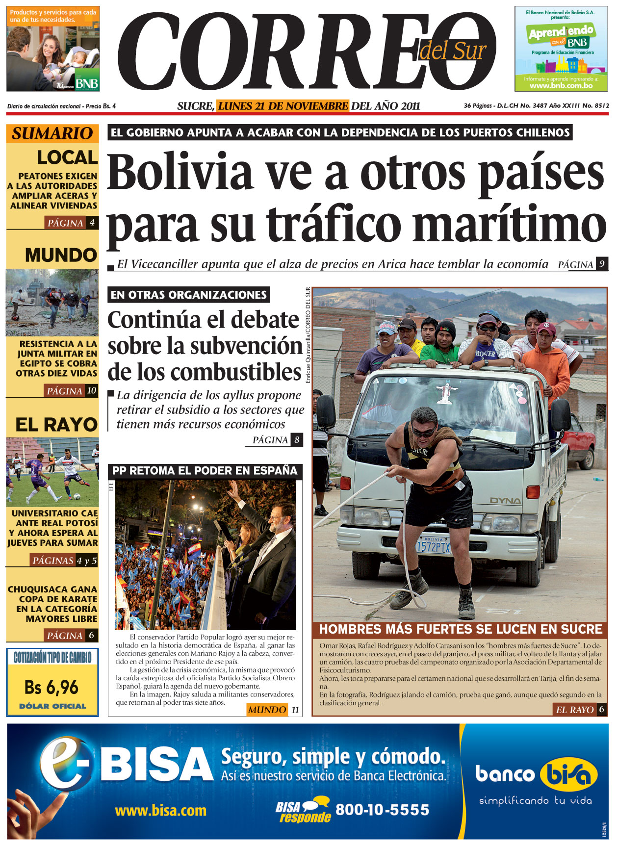 Bolivia buscará salidas al mar por otros países desde el 2012
