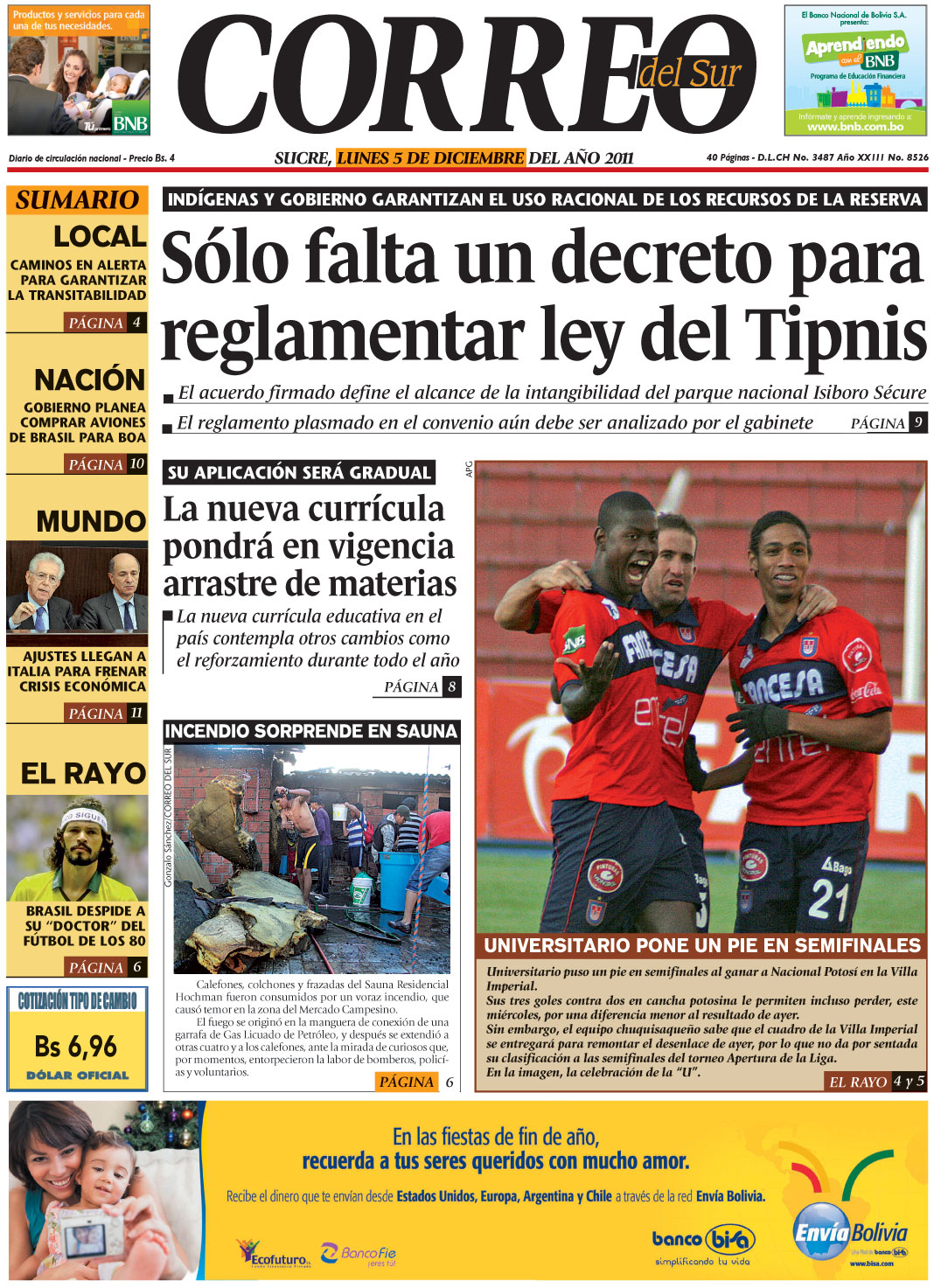 Después de varios anuncios, el Gobierno y los pueblos indígenas del Territorio Indígena y Parque Nacional Isiboro-Sécure (Tipnis) firmaron ayer un acuerdo sobre la reglamentación de la ley corta, que define el alcance de la intangibilidad sobre esa reserva natural. El documento será plasmado en un decreto supremo que hoy, lunes, será analizado por el Gabinete de ministros...